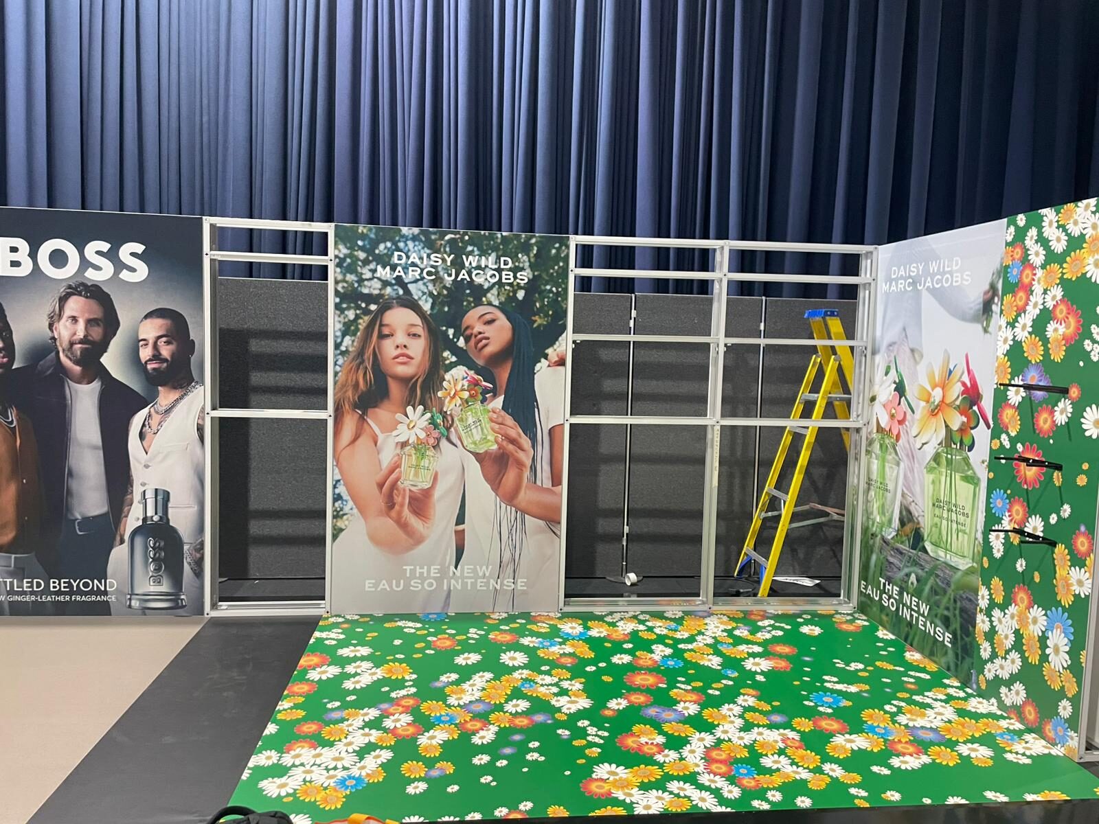 Finition personnalisée : chaque marque obtenait un rendu fidèle à son identité — luxe pour Hugo Boss/Marc Jacobs, impact visuel pour Rimmel et Max Factor.